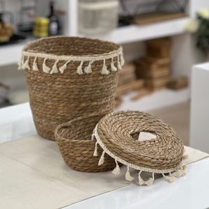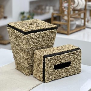 ست جا دستمال و سطل زباله حصیری